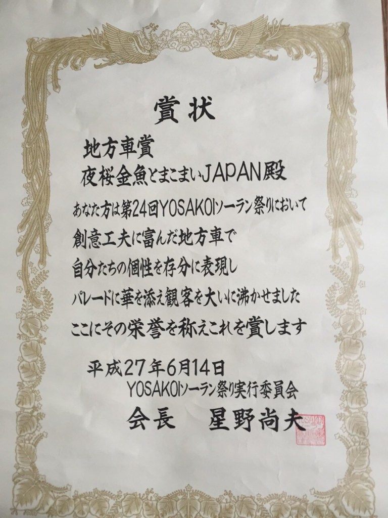 2000年の札幌YOSAKOIソーラン祭りでは夜桜金魚のメンバーとして10人程のメンバーが一緒に参加、見事すすきの大賞を受賞し手話で振付をしました。
